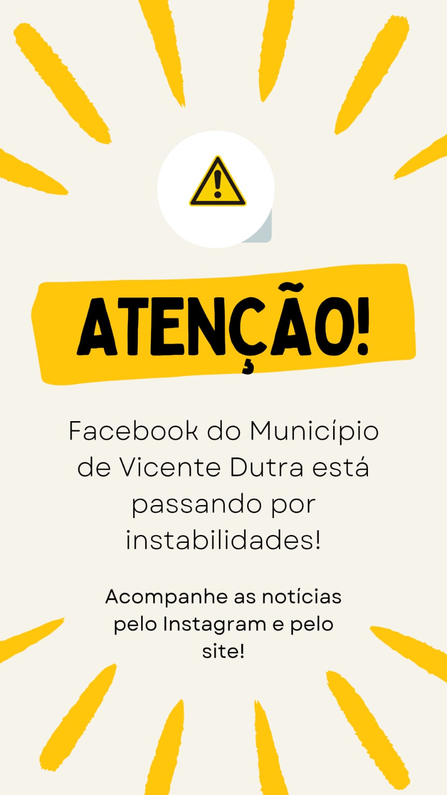 Atenção Facebook do Município de Vicente Dutra passando por Instabilidades!