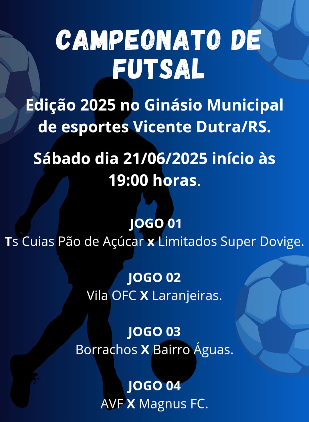 Nesta sexta-feita dia 20 de Junho de 2025 ocorre a abertura do Campeonato de Futsal, seguindo no Sábado dia 21 de Junho de 2025 com mais 4 jogos.