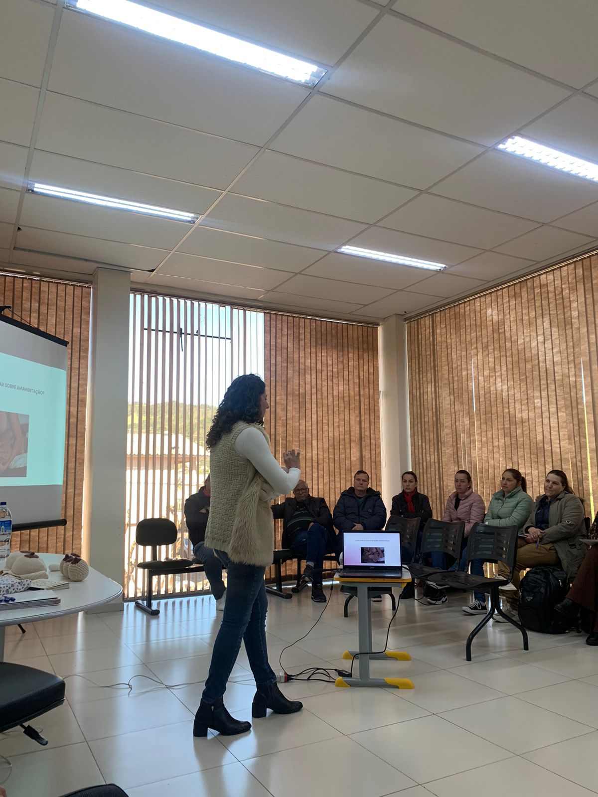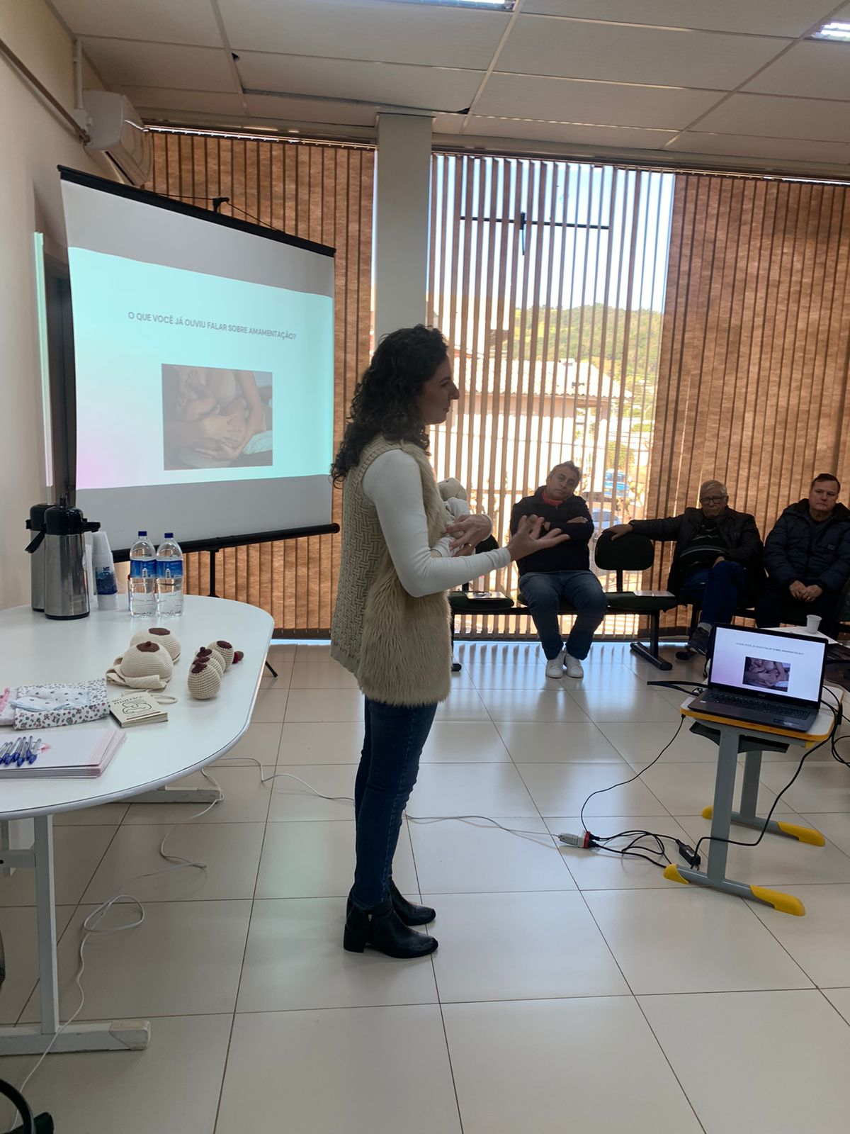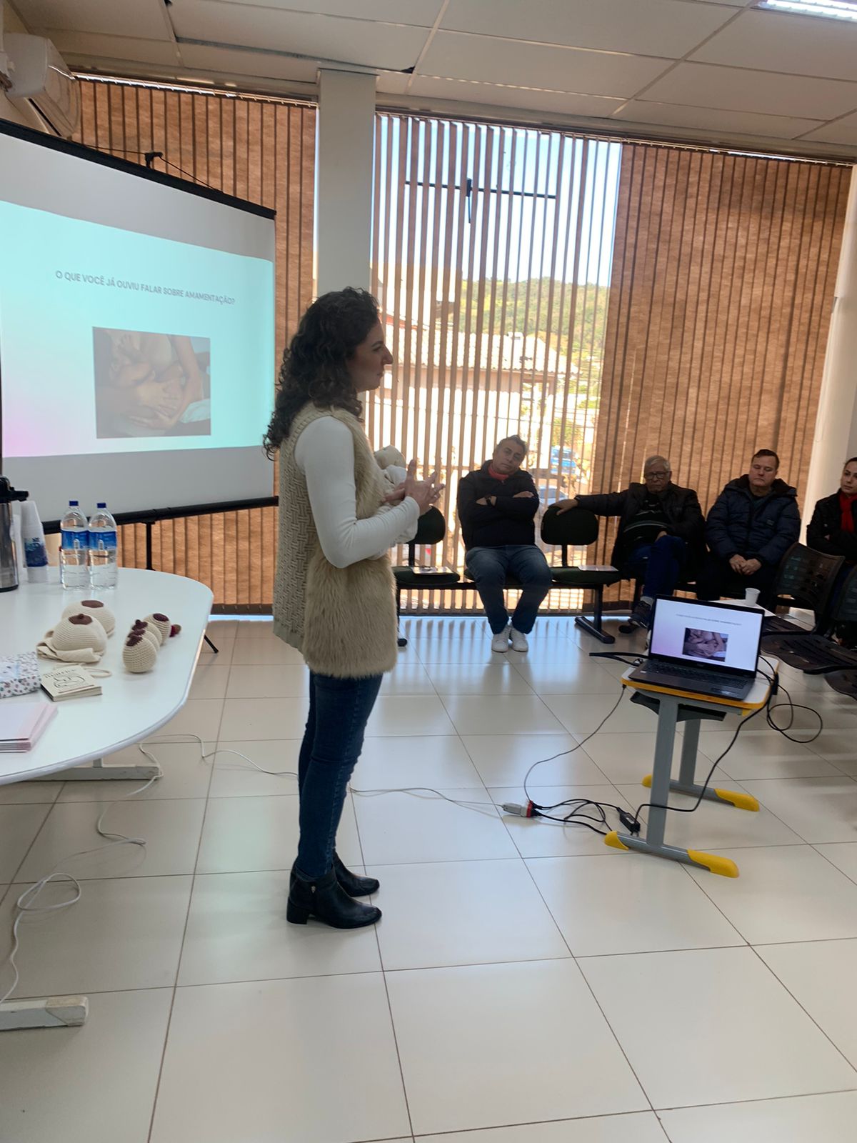 Na tarde de quarta-feira, dia 25/06, na sala de reuniões da Prefeitura Municipal de Vicente Dutra, contamos com a presença da Enfermeira Graziela Piovesan, especialista em amamentação, que abordou os temas voltados ao Eixo Puerpério e Recém-Nascido do Programa Rede Bem Cuidar, resgatando mitos e verdades dessa fase, a importância do aleitamento materno, pega correta e os benefícios do mesmo para o crescimento e desenvolvimento infantil. Esse momento, é fundamental para priorizar o compartilhamento de saberes e a melhoria da oferta nas ações de promoção, prevenção e atenção à saúde das nossas gestantes, puérperas e recém-nascidos.