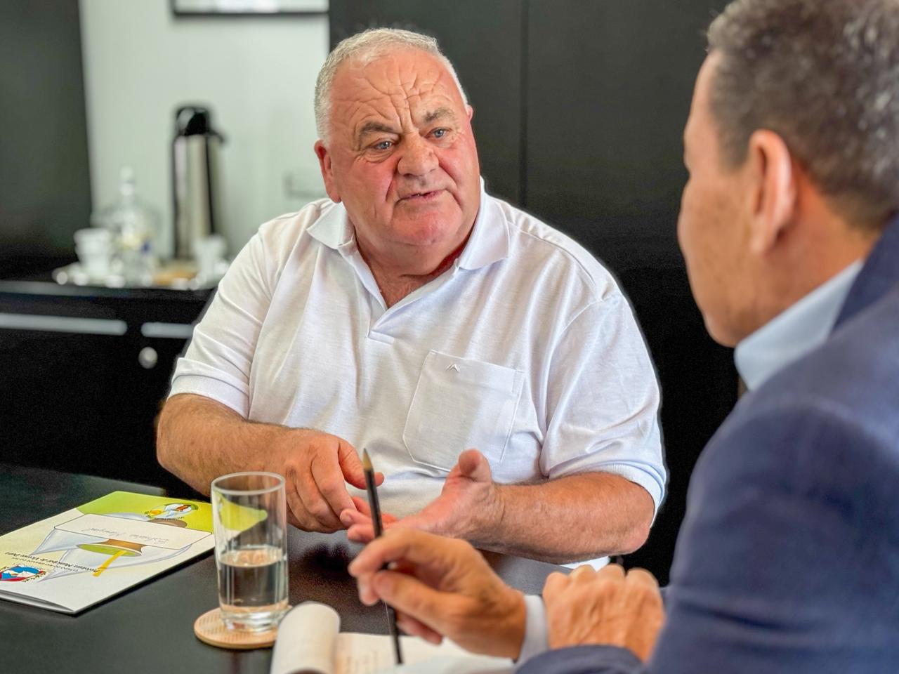 O senador registrou as demandas apresentadas. A visita integra as articulações institucionais da Administração Municipal em busca de apoio estadual e federal para projetos de qualificação dos espaços públicos de Vicente Dutra.